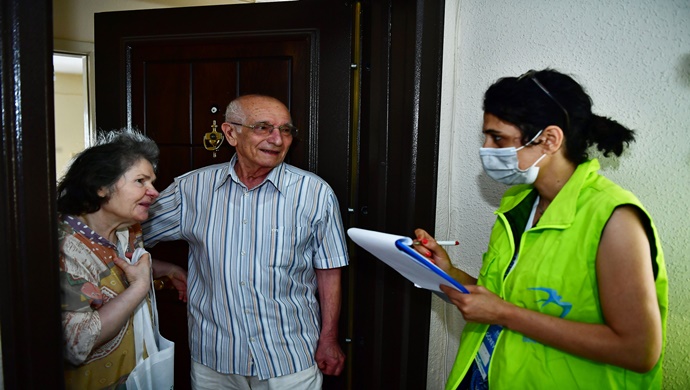 Beylikdüzü Belediyesi, ilçe halkıyla ilişkileri güçlendirmek, sorunlara hızlı ve yerinde çözüm bulmak amacıyla başlattığı Saha Çözüm Hareketi’ne hız kesmeden devam ediyor. 5 saha çözüm aracı ve 70 kişilik personel ile ilçede kapsamlı bir çalışma yürüten ekipler, Beylikdüzü’nde yer alan tüm hane ve iş yerlerinin tek tek kapısını çalıyor, talep ve şikâyetleri dinleyerek ilgili birim ve müdürlüklerle paylaşıyor. İki kişilik gruplar halinde yapılan ve sosyal mesafe kuralına dikkat edilen ziyaretlerde Beylikdüzü Belediyesi’nin son iki yılda yaptığı tüm çalışmaları içeren dergi ile birlikte dezenfektan ve maske bulunan çantalar da ekipler tarafından vatandaşlara hediye ediliyor.