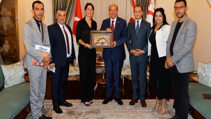 Cumhurbaşkanı Ersin Tatar, Çağdaş Müzik Derneği başkanı ve Azerbaycan Kıbrıs Dostluk Cemiyeti heyetini kabul etti