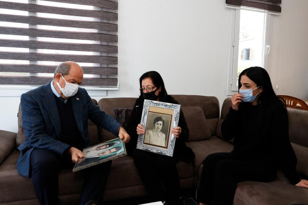 Cumhurbaşkanı Ersin Tatar, 21 Aralık Şehitler Haftası dolayısıyla şehit ailelerine gerçekleştirdiği bir dizi ziyaret kapsamında bugün, Lapta’da şehit kızı Ayşe Beyoğlu’nu evinde ziyaret etti