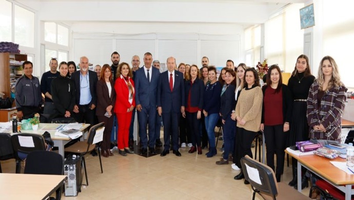 Cumhurbaşkanı Ersin Tatar, Adıyaman’da İsias Otel’deki enkazda hayatını kaybeden şampiyon meleklerimizin öğrenim gördüğü Gazimağusa Türk Maarif Koleji’ni ziyaret etti