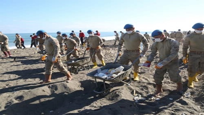 Sel Bölgesinde Jandarma Sahile Vuran Atıkları Temizledi
