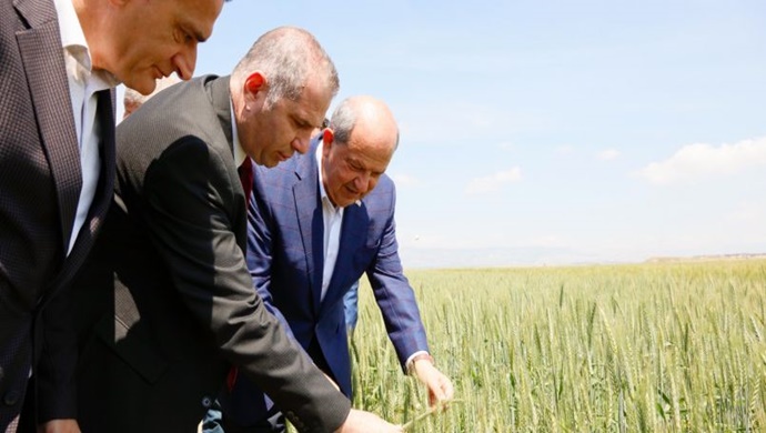 Cumhurbaşkanı Ersin Tatar, 17. Tahıl Çeşidi Adaptasyon Deneme Parselleri Projesi tanıtım etkinliğine katıldı.