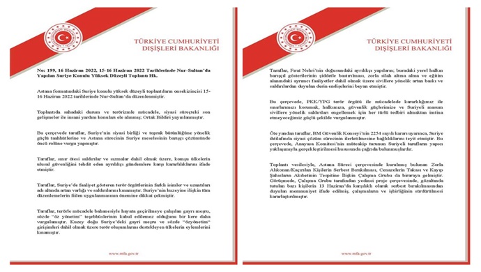 15-16 Haziran 2022 Tarihlerinde Nur-Sultan’da Yapılan Suriye Konulu Yüksek Düzeyli Toplantı Hk.