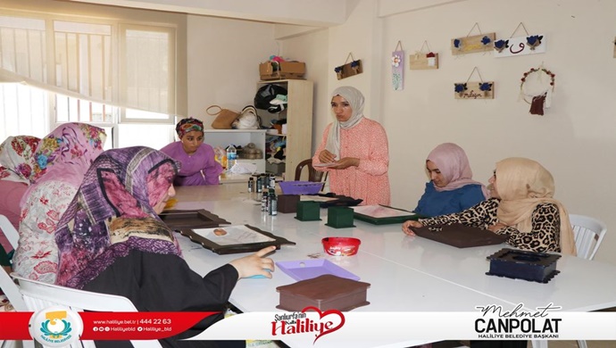 Şanlıurfa Haliliye Belediyesi tarafından hizmete sunulan Ahmet Yesevi Milletevinde, kadınların kurslarda aldıkları eğitimlerde, emek sanata dönüşüyor.