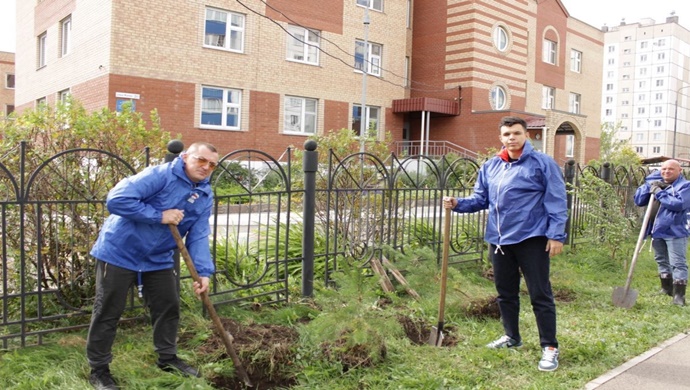 Birleşik Rusya aktivistleri Magnitogorsk’taki bir anaokulunun yakınına çam ağaçları dikti