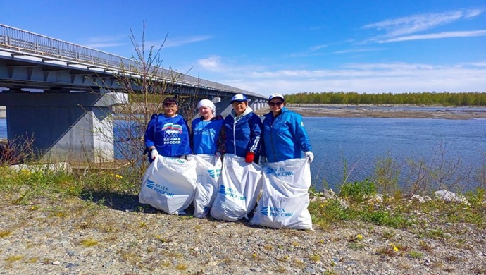 Magadan bölgesinde, Birleşik Rusya üyeleri Arman Nehri kıyısında bir temizlik günü düzenledi