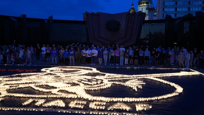 В Хабаровске активисты «Единой России» выложили из 10 тысяч свечей портрет Героя Великой Отечественной войны